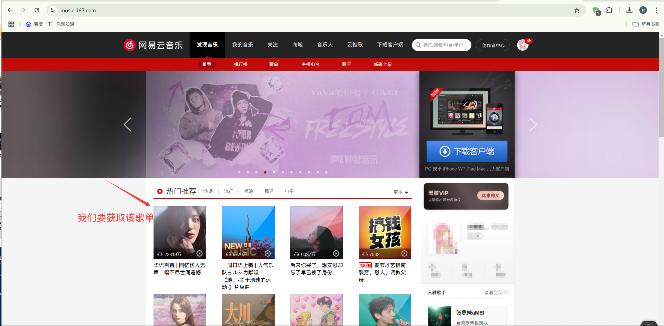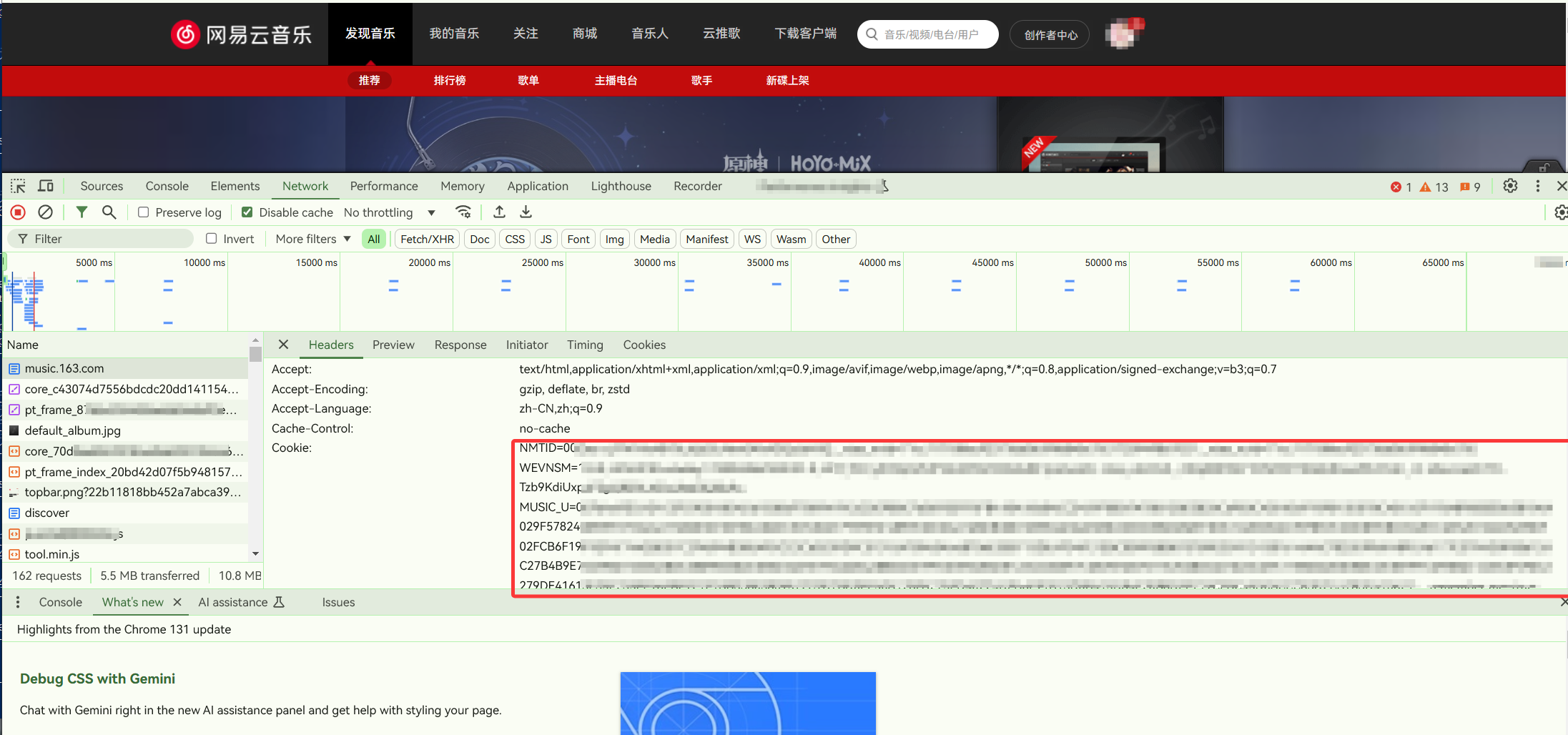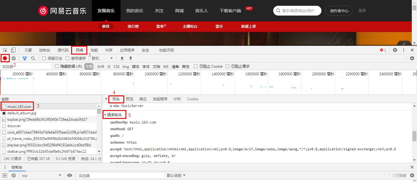 1、打开网易云音乐网站(https://music.163.com)登录后!,按下F12打开浏览器开发人员工具;
